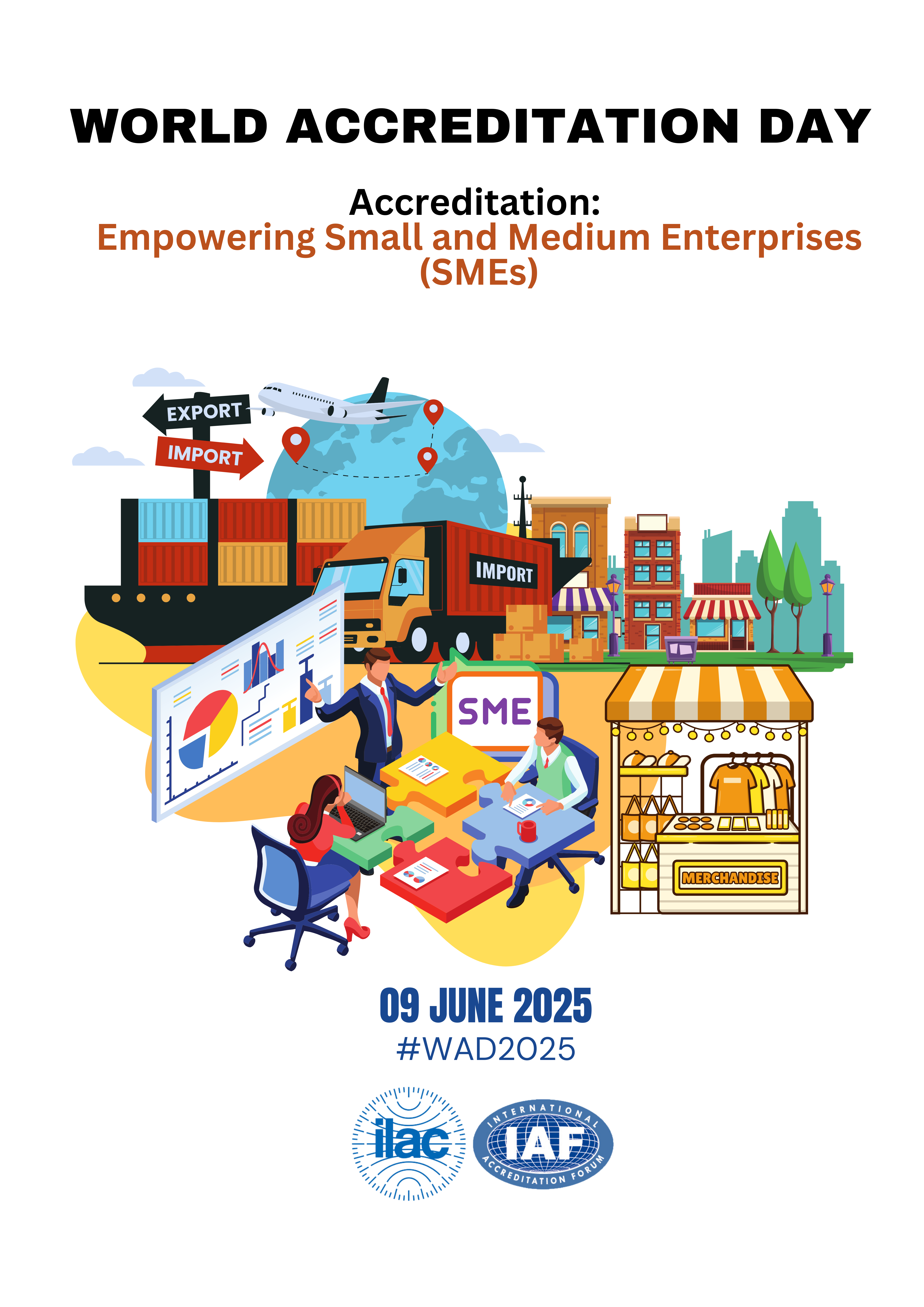 The poster I designed illustrates the theme “Accreditation: Empowering Small and Medium Enterprises (SMEs)” by highlighting the crucial role accreditation plays in strengthening cross-border markets and facilitating international trade for SMEs. It demonstrates how accreditation enhances the business effectiveness and growth of SMEs by providing significant benefits, including improved operational efficiency, increased credibility, and expanded access to local and global opportunities. The poster underscores that, through accreditation, even SMEs can unlock their full potential to compete and succeed on a global scale.
