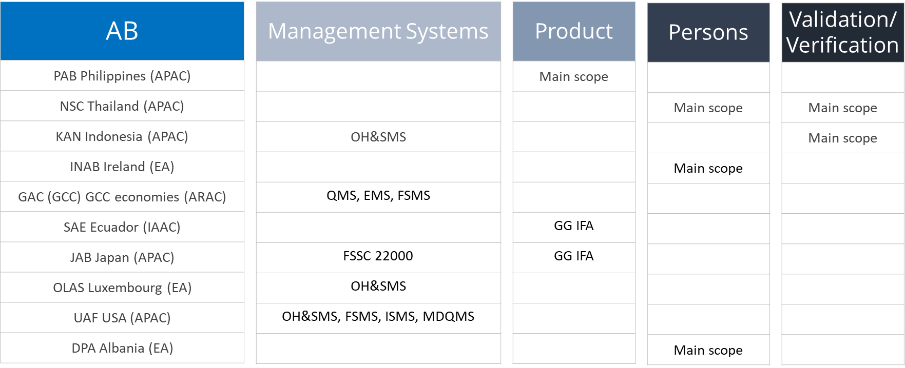 Accreditation Body Member scope extensions include: